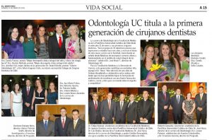 Imagen 12: Titulación Primera Generación de Odontología UC (2015) Tras haber completado todos sus cursos durante seis años, 41 nuevos cirujanos dentistas se titularon en 2015, marcando el inicio de esta nueva carrera en la Facultad de Medicina UC.